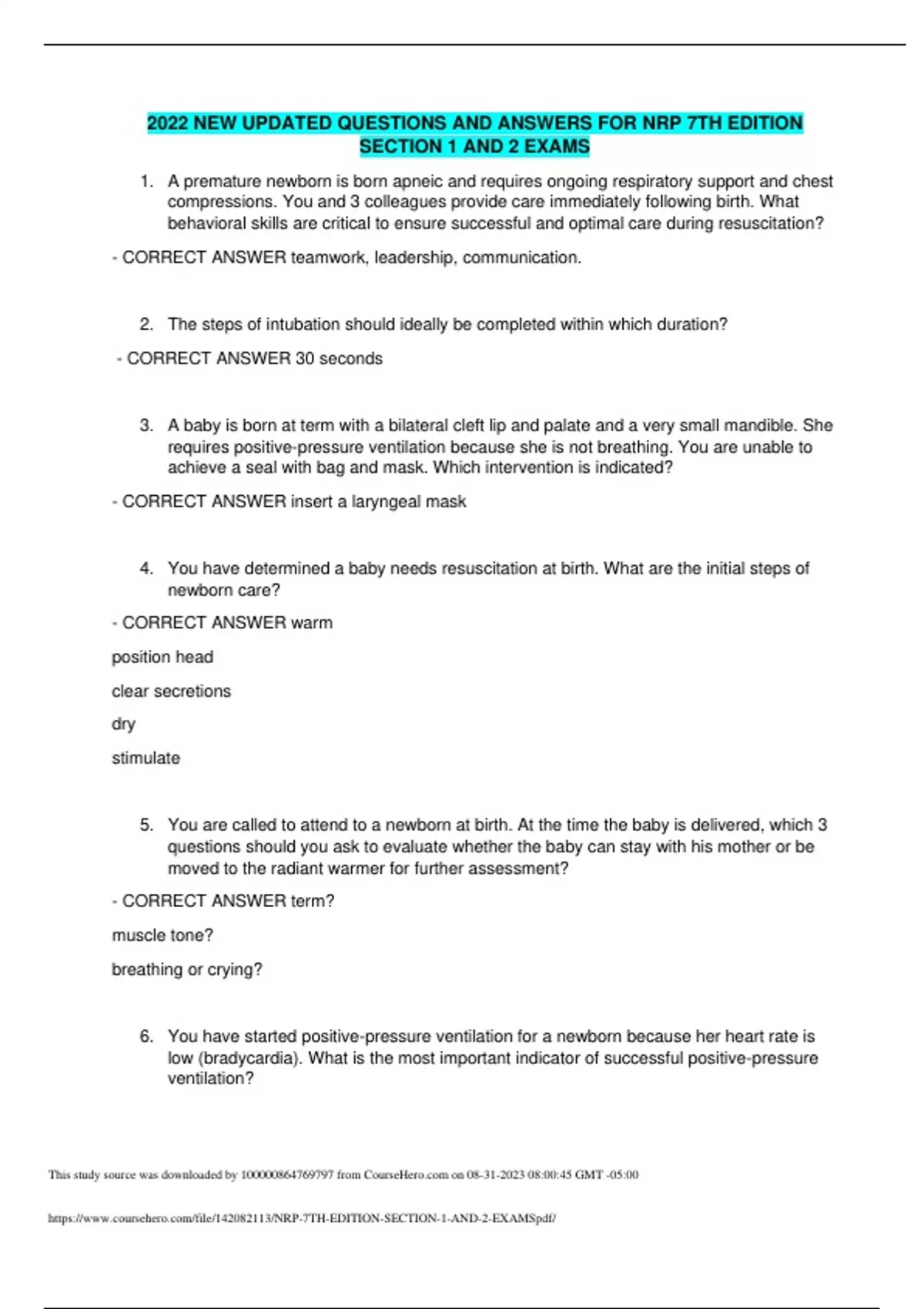 2022 NEW UPDATED QUESTIONS AND ANSWERS FOR NRP 7TH EDITIONSECTION 1 AND 2 EXAMS. 2022 NEW UPDATED QUESTIONS AND ANSWERS FOR NRP 7TH EDITIONSECTION 1 AND 2 EXAMS. 2022 NEW UPDATED QUESTIONS AND ANSWERS FOR NRP 7TH EDITIONSECTION 1 AND 2 EXAMS.