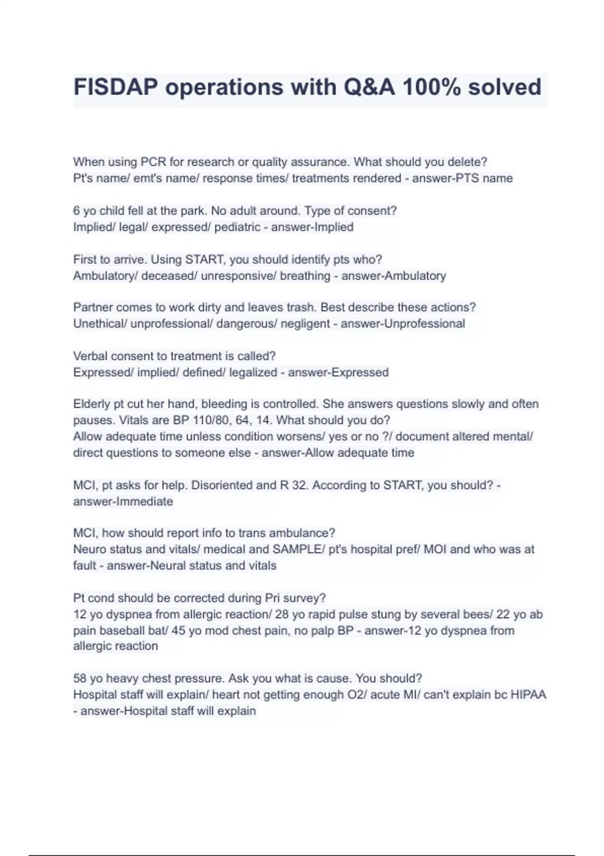 FISDAP operations with Q&A 100% solved
