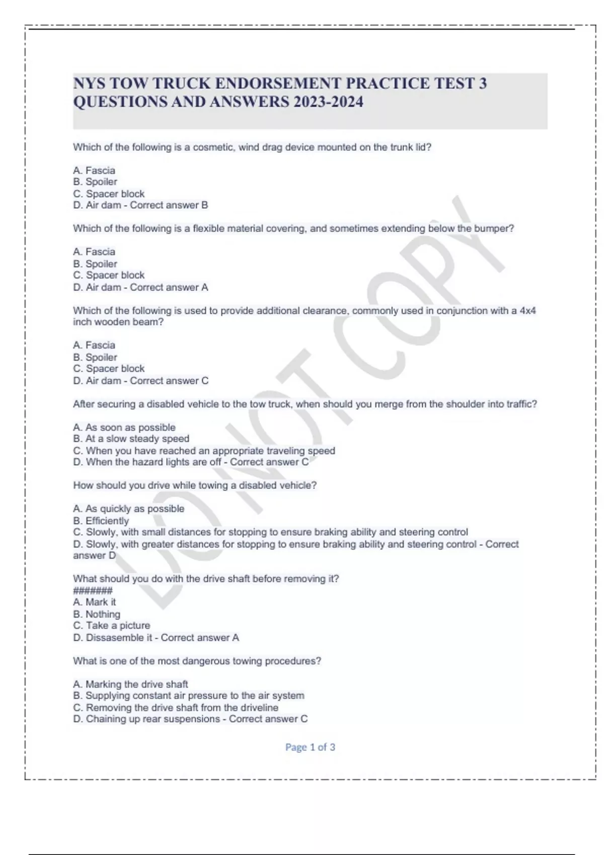 NYS TOW TRUCK ENDORSEMENT PRACTICE TEST 3 QUESTIONS AND ANSWERS .