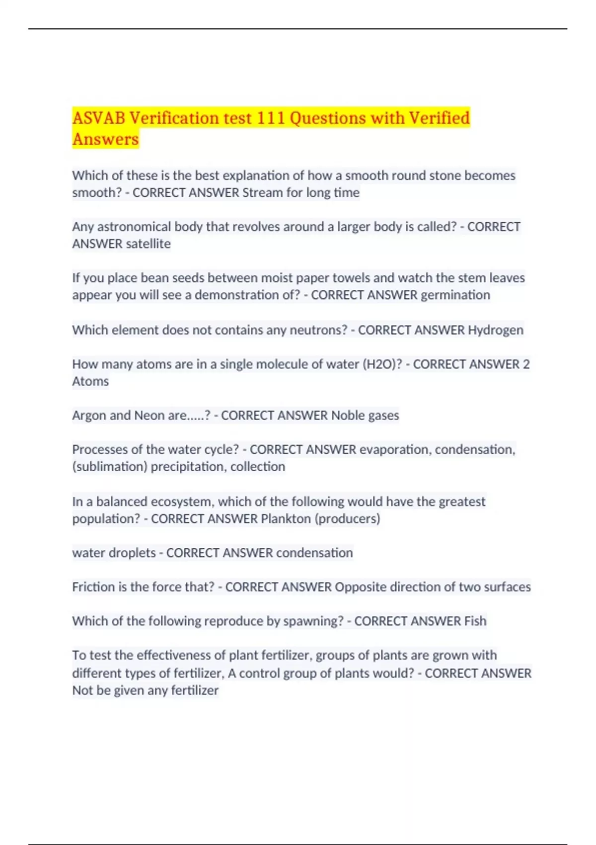ASVAB Verification test 111 Questions with Verified Answers,100% CORRECT