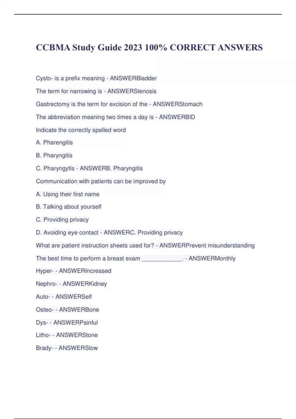 CCBMA Study Guide 2023 100% CORRECT ANSWERS