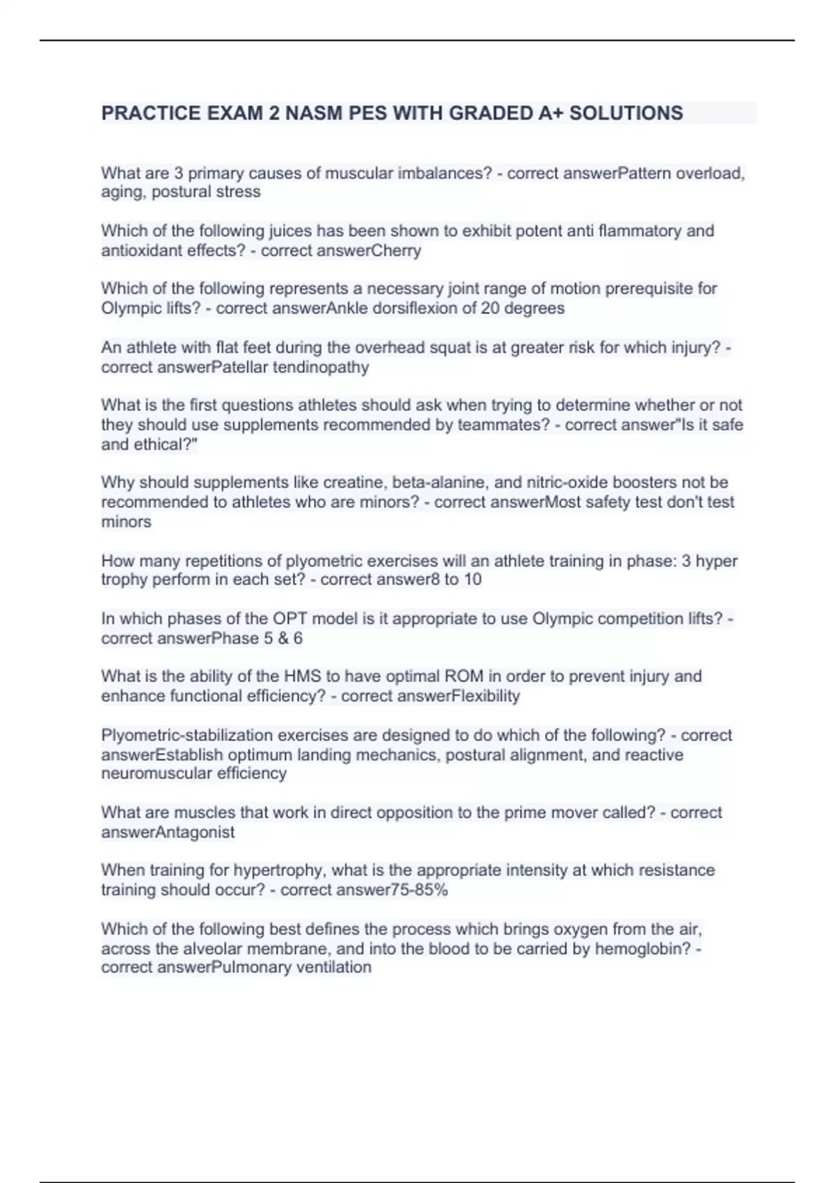 practice exam 2 nasm pes with graded a solutions