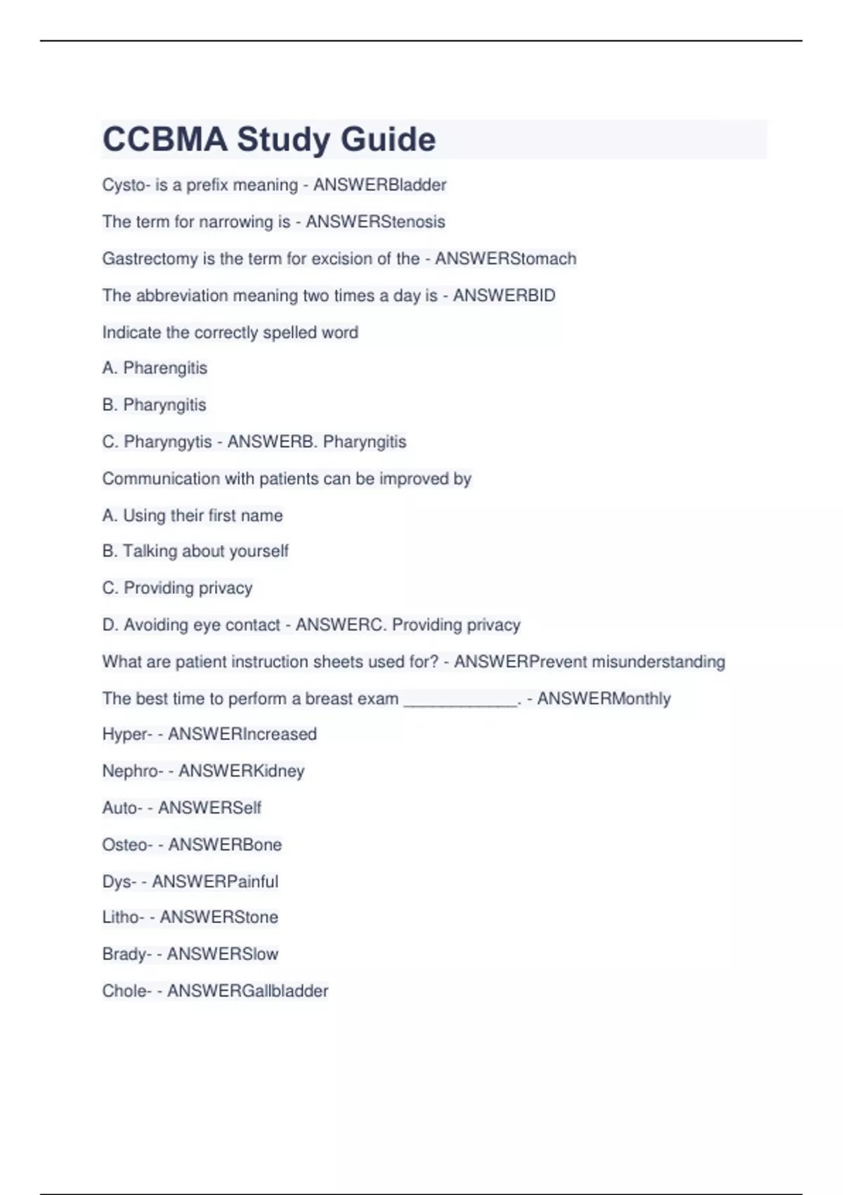 CCBMA Study Guide 2023 100% CORRECT ANSWERS
