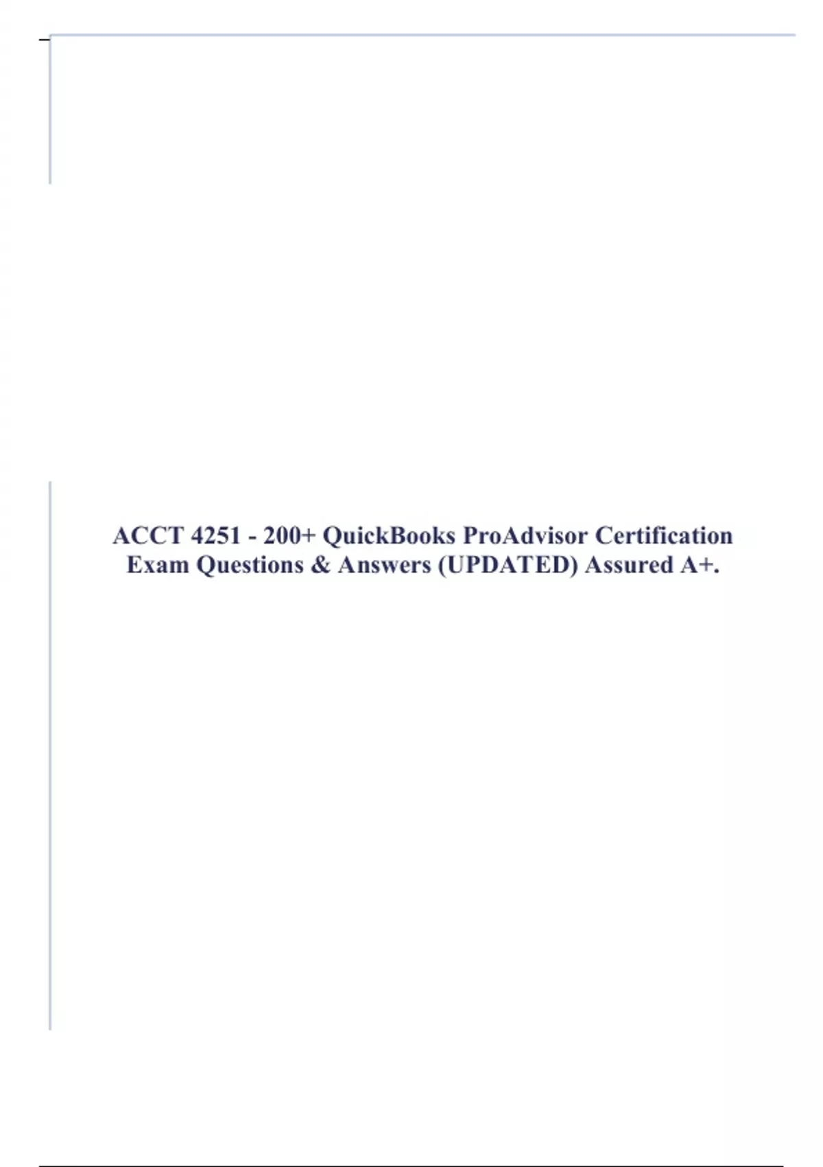ACCT 4251 - 200+ QuickBooks ProAdvisor Certification Exam Questions & Answers (UPDATED) Assured A+.