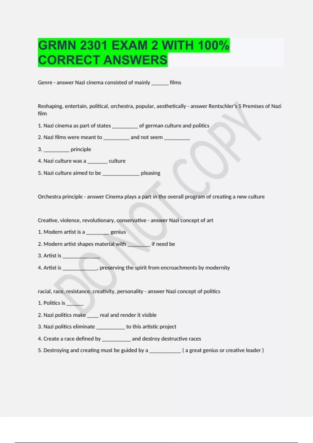 GRMN 2301 EXAM 2 WITH 100% CORRECT ANSWERS.