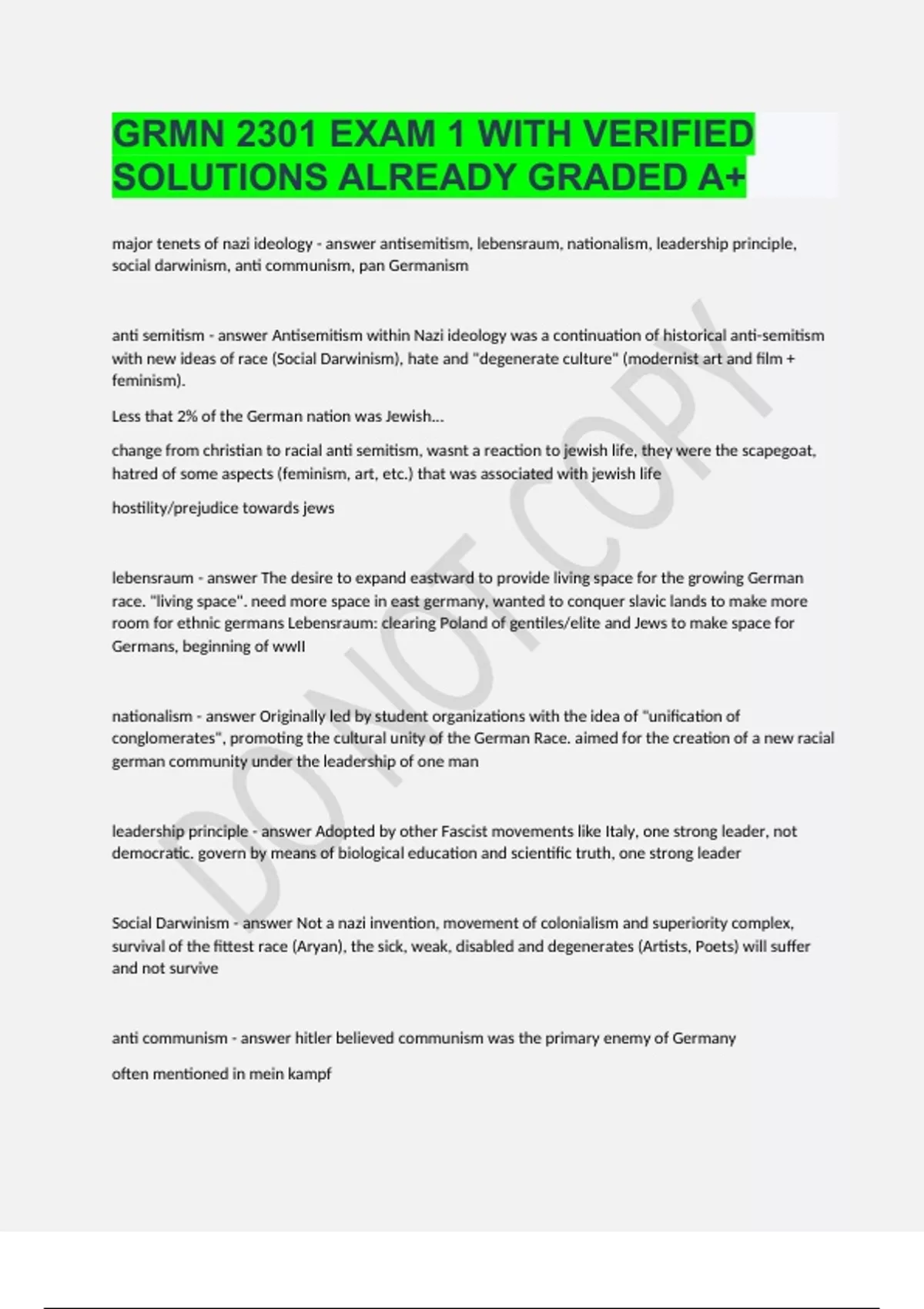 GRMN 2301 EXAM 1 WITH VERIFIED SOLUTIONS ALREADY GRADED A+