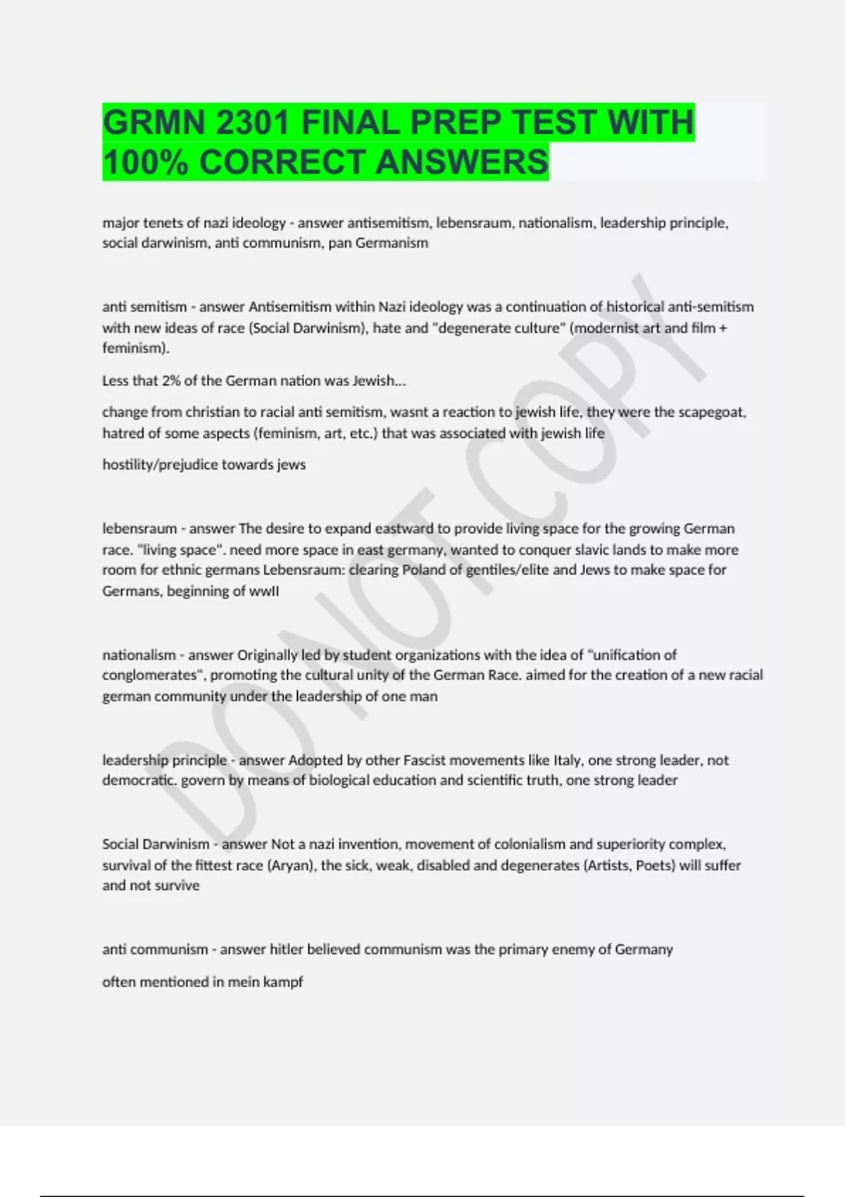 GRMN 2301 FINAL PREP TEST WITH 100% CORRECT ANSWERS.