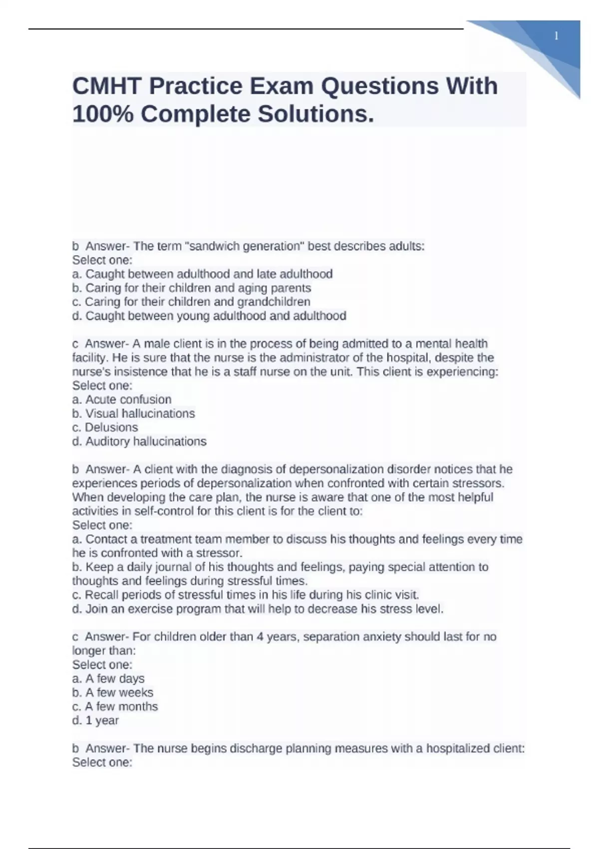 CMHT Practice Exam Questions With 100% Complete Solutions/CMHT Practice Exam Questions With 100% Complete Solutions/CMHT Practice Exam Questions With 100% Complete Solutions/CMHT Practice Exam Questions With 100% Complete Solutions/CMHT Practice Exam Questions With 100% Complete Solutions/CMHT Practice Exam Questions With 100% Complete Solutions