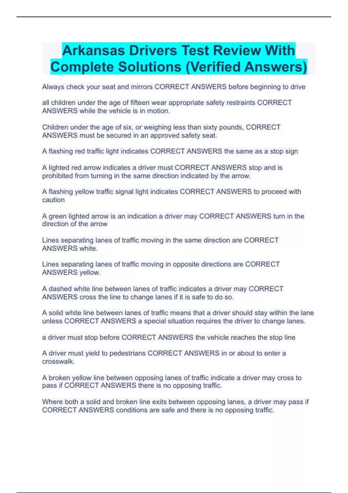 Arkansas Drivers Test Review With Complete Solutions (Verified Answers)