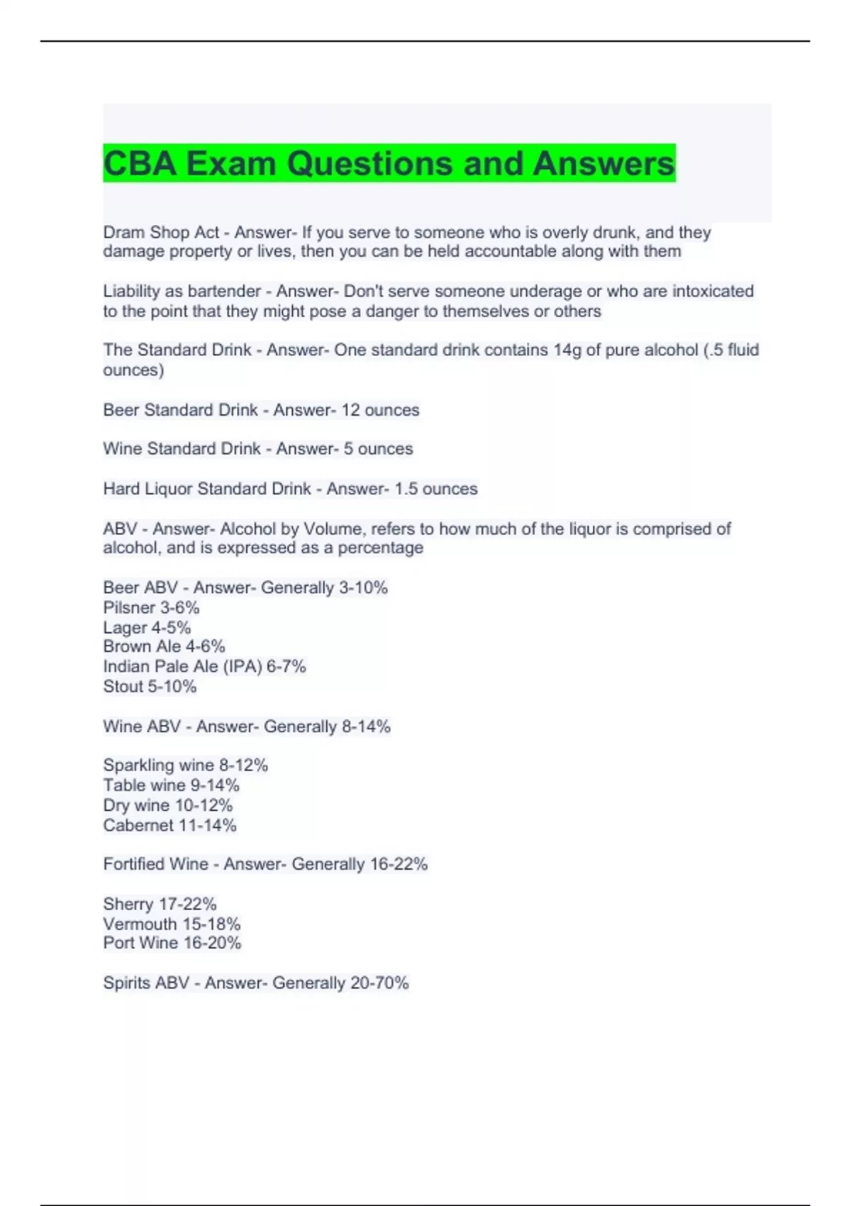 CBA Exam Questions and Answers