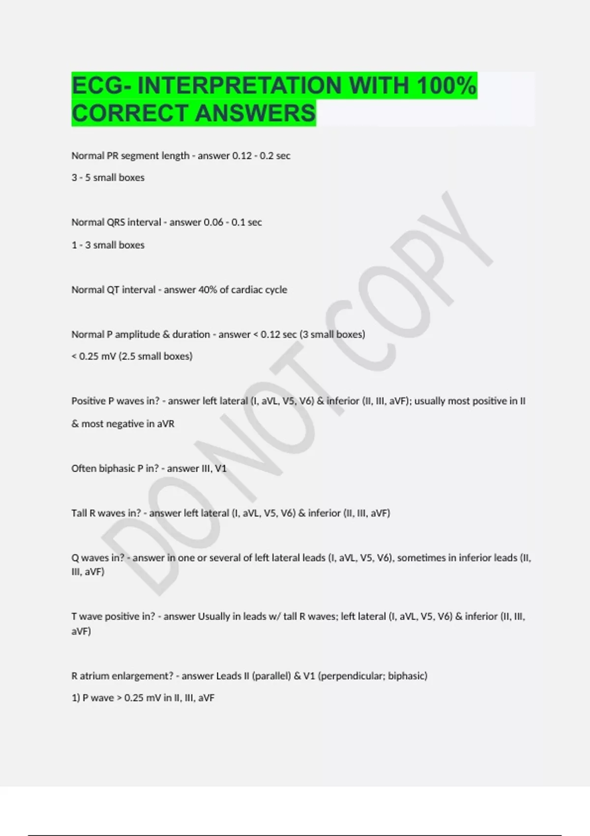 ECG- INTERPRETATION WITH 100% CORRECT ANSWERS.