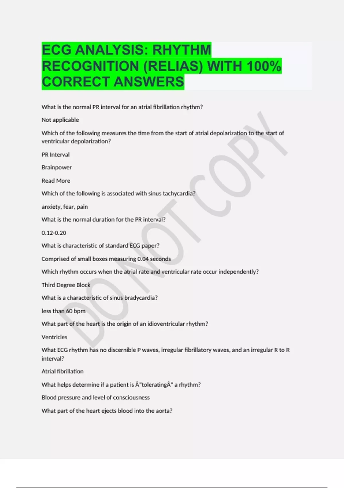 ECG ANALYSIS RHYTHM RECOGNITION (RELIAS) WITH 100% CORRECT ANSWERS