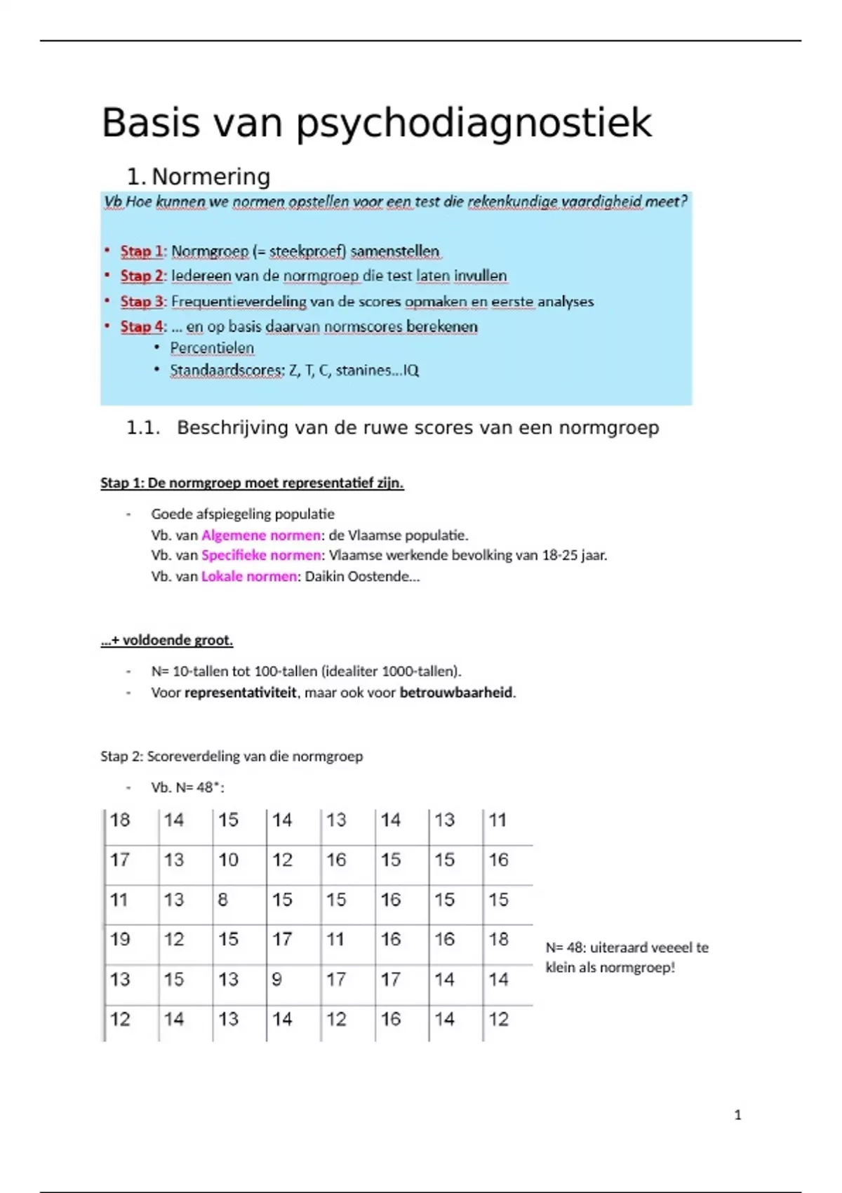 Samenvatting Norming Gedrag Psychodiagnostiek