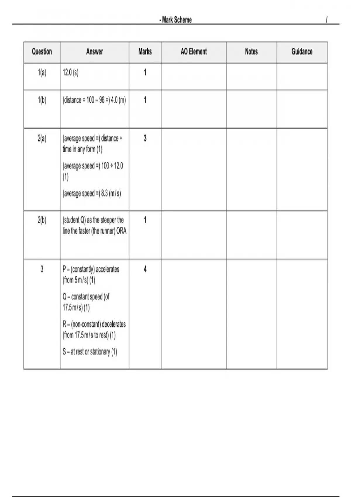 Question Answer Marks AO Element Notes Guidance