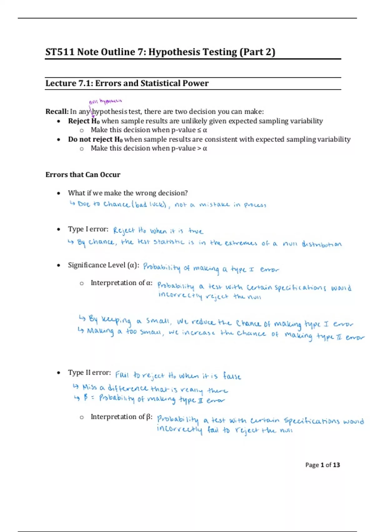 Lecture notes of 14 pages for the course ST 311 at North Carolina State University (notes)