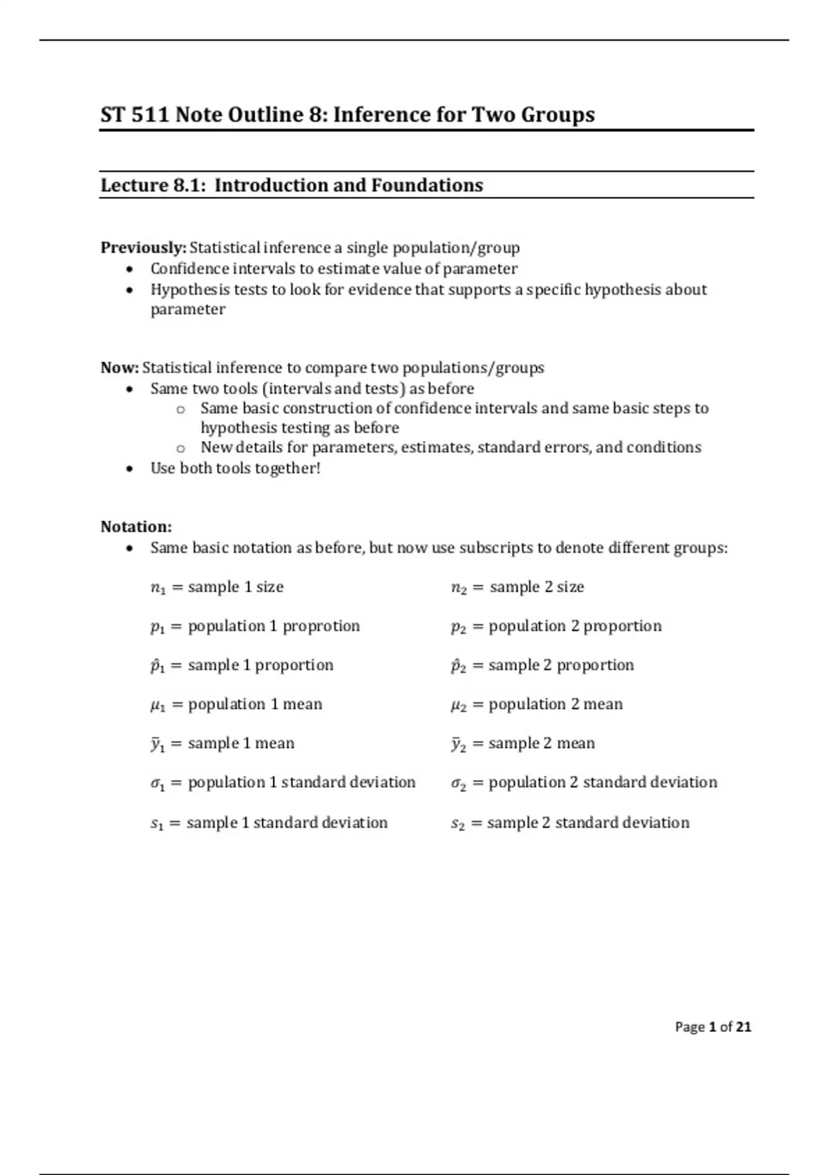 Lecture notes of 21 pages for the course ST 311 at North Carolina State University (notes)