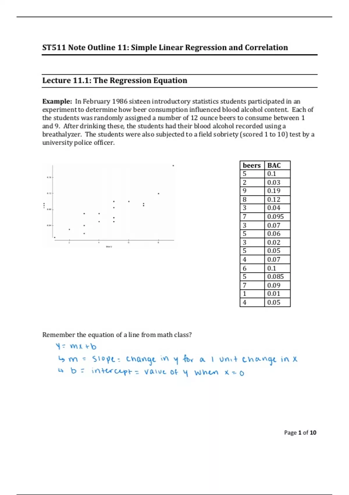 Lecture notes of 10 pages for the course ST 311 at North Carolina State University (notes)