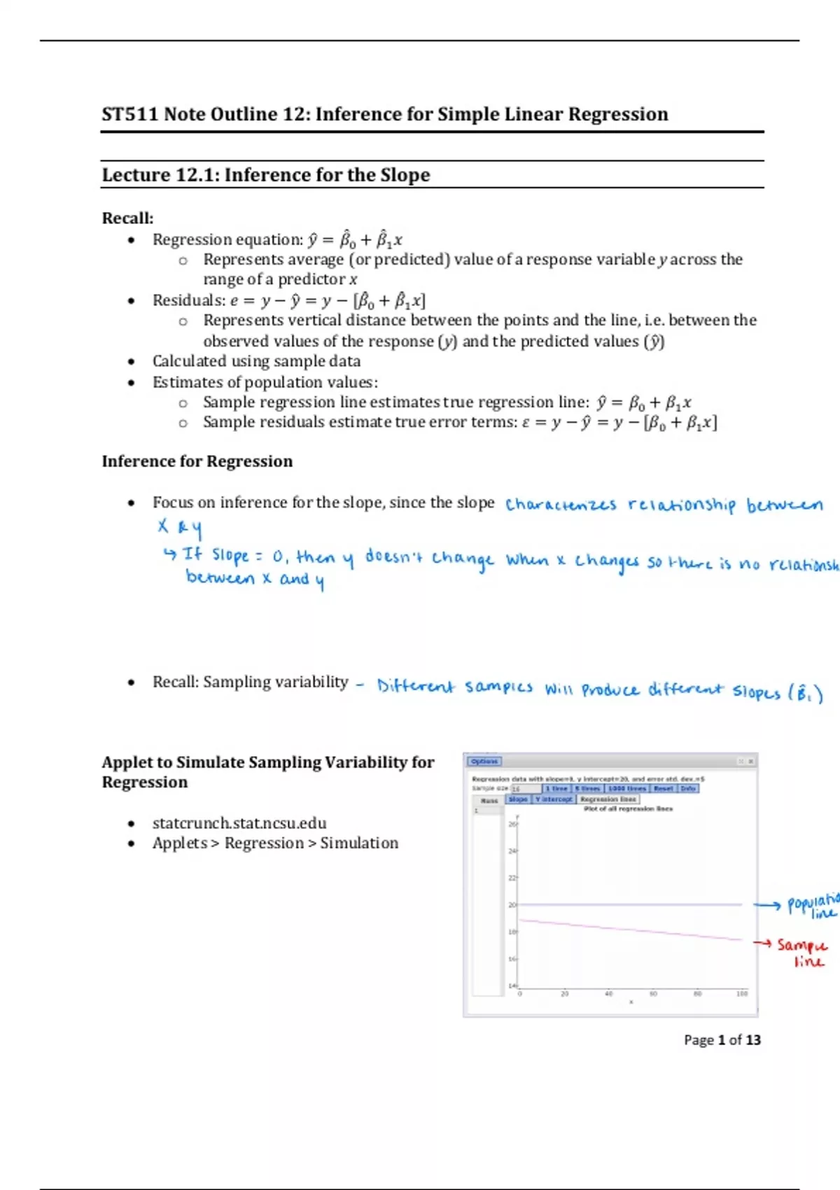 Lecture notes of 13 pages for the course ST 311 at North Carolina State University (notes)