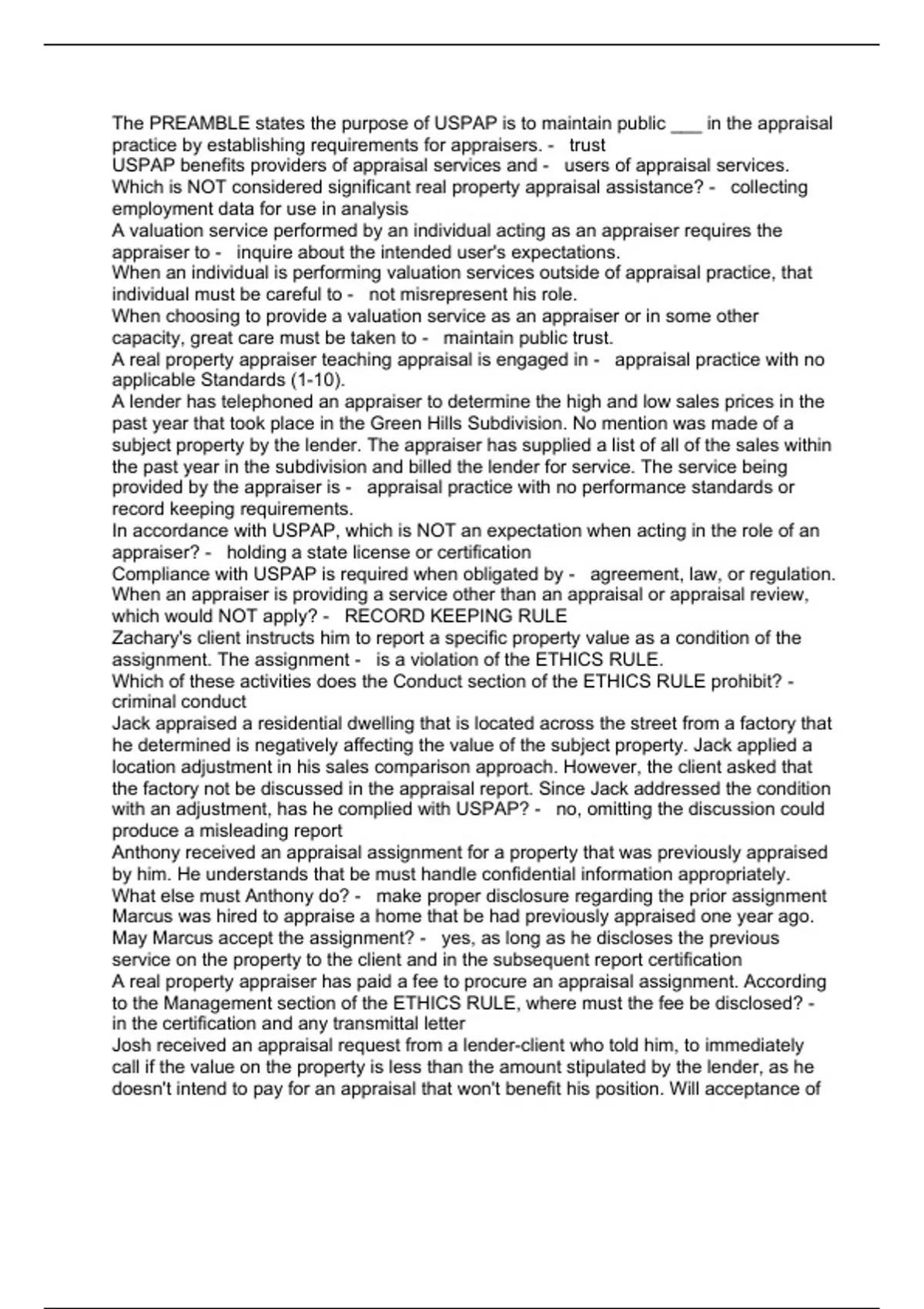 USPAP Practice Test Questions With 100% Correct Answers 2023