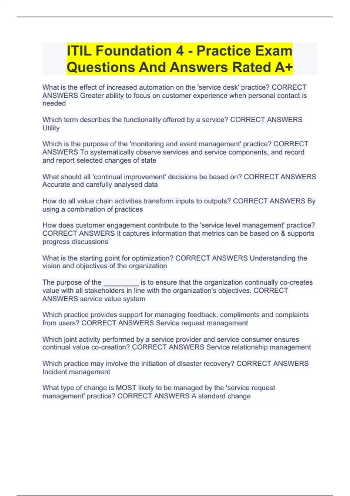 ITIL Foundation 4 - Practice Exam Questions And Answers Rated A+