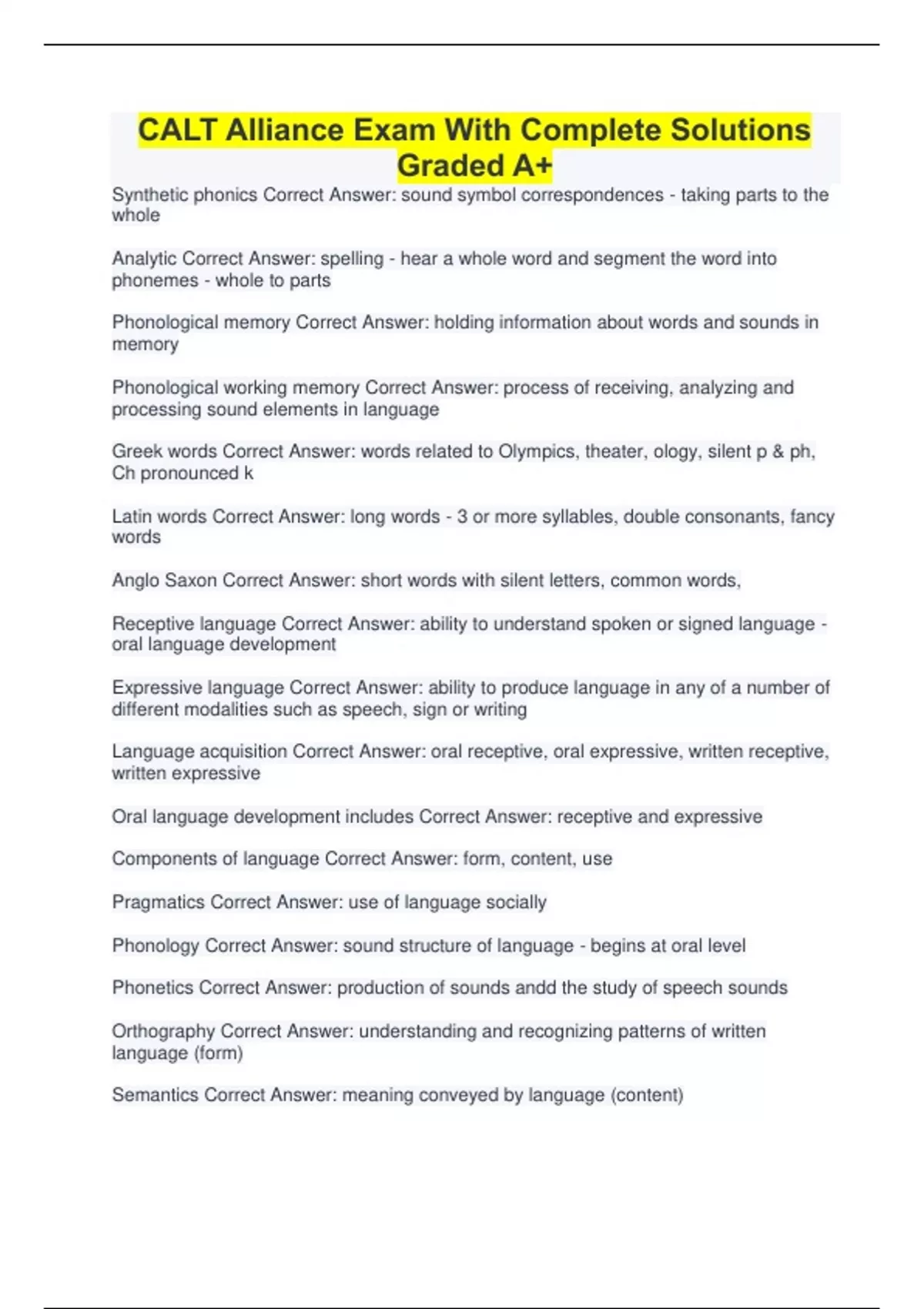 calt alliance exam with complete solutions graded