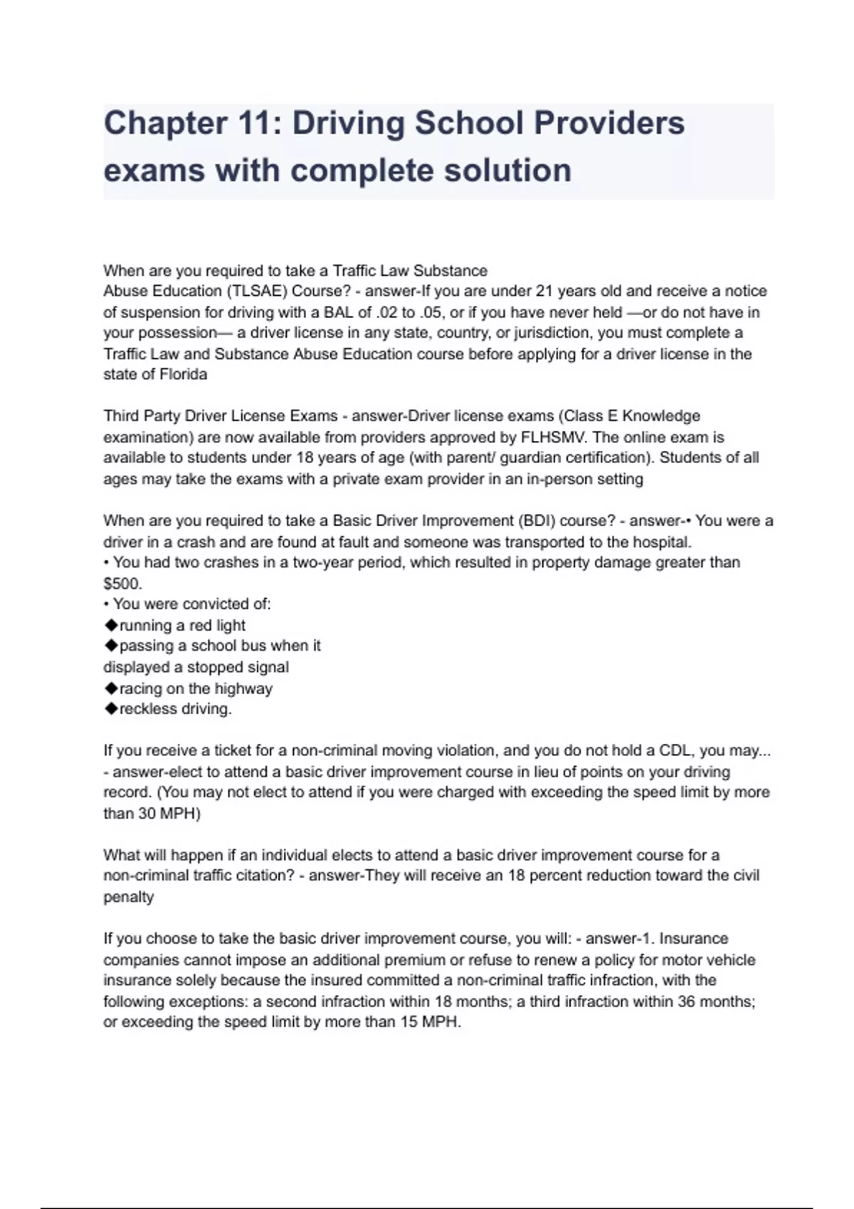 Chapter 11: Driving School Providers exams with complete solution