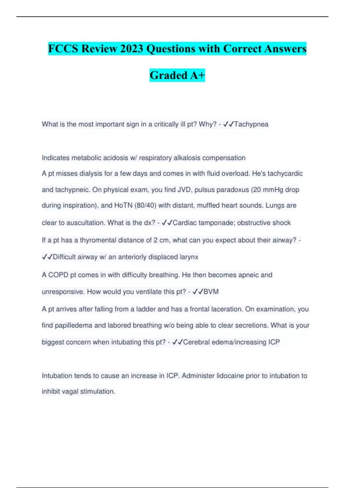 FCCS Review 2023 Questions with Correct Answers Graded A+