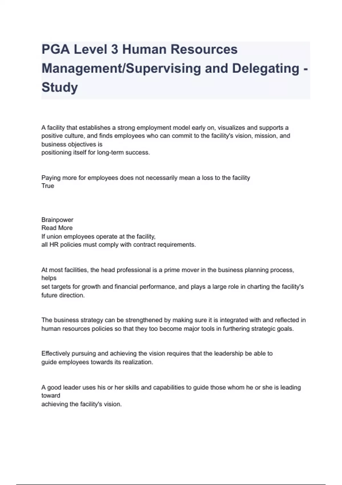 PGA Level 3 Human Resources Management/Supervising and Delegating - Study