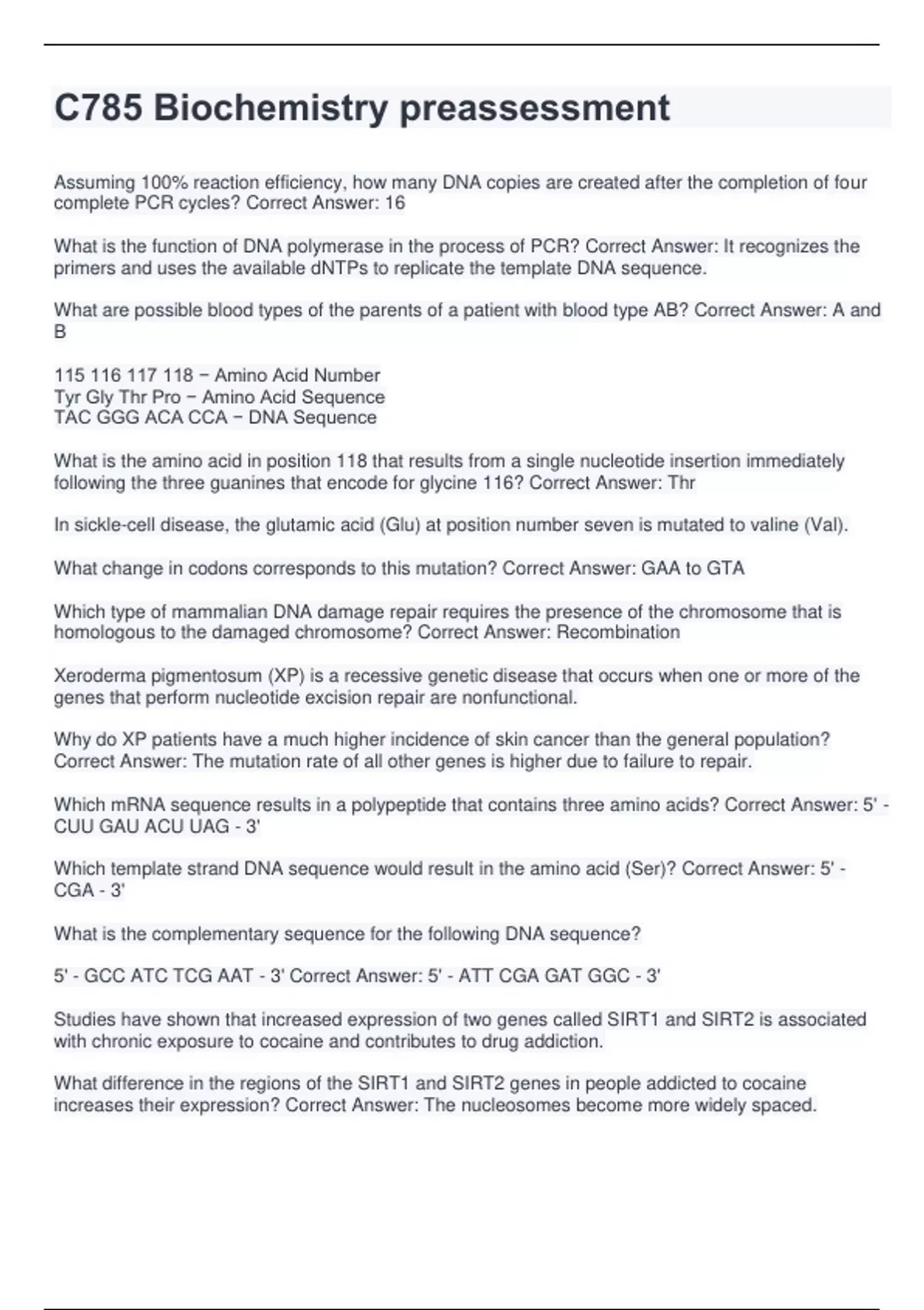 C785 Biochemistry preassessment