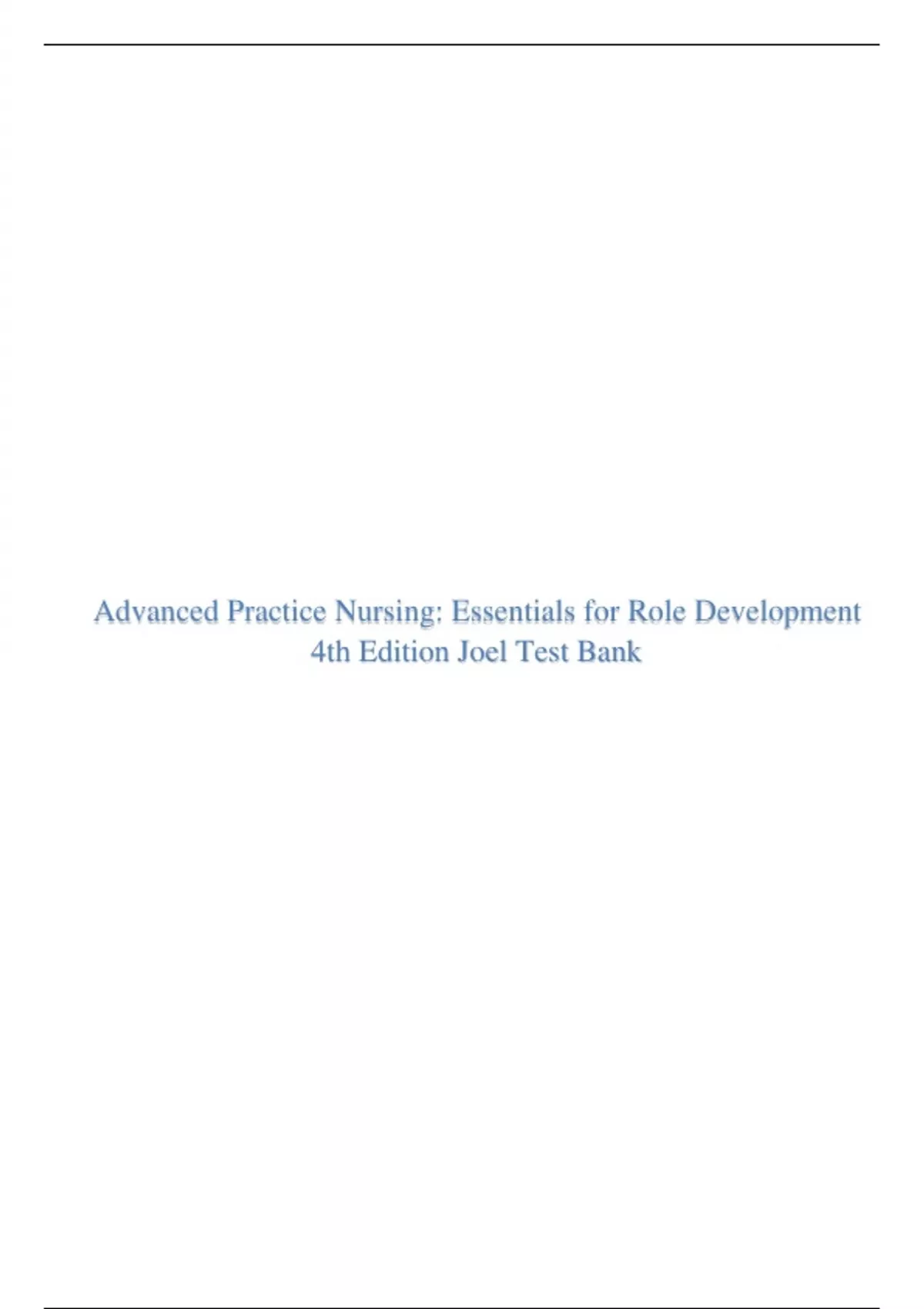 Advanced Practice Nursing: Essentials for Role Development 4th Edition Joel Test Bank