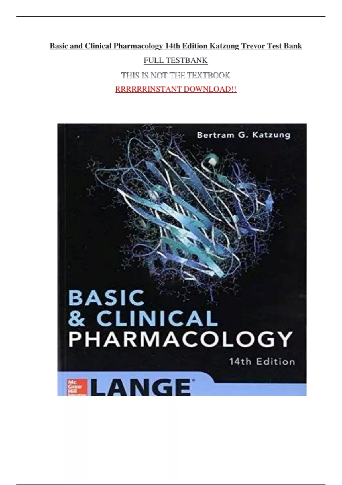 Test Bank for Basic and Clinical Pharmacology 14th Edition by Bertram Katzung, All Chapters 1-64 Q&A with Rationales | Complete Guide A+