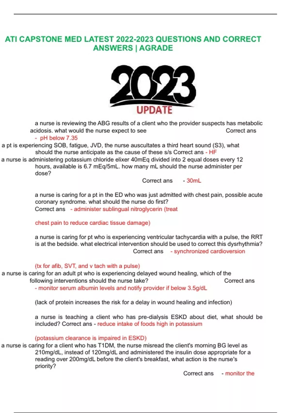 ATI CAPSTONE MED LATEST QUESTIONS AND CORRECT ANSWERS
