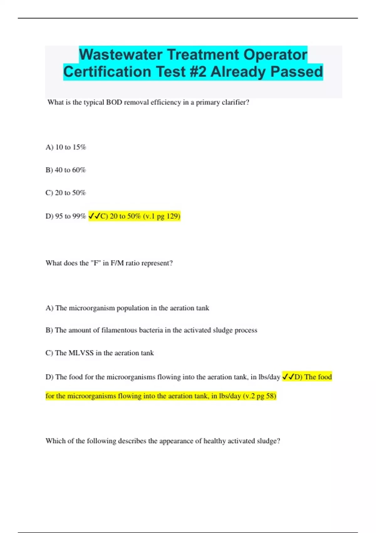 Wastewater Treatment Operator Certification Test #2 Already Passed