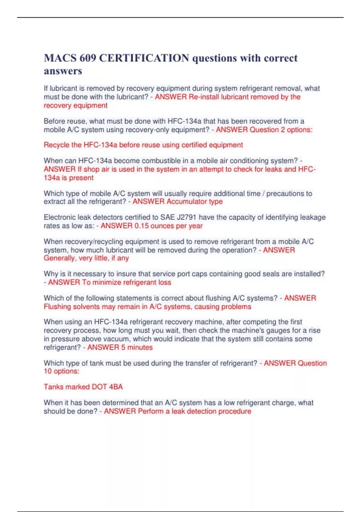 macs 609 certification questions with correct answ