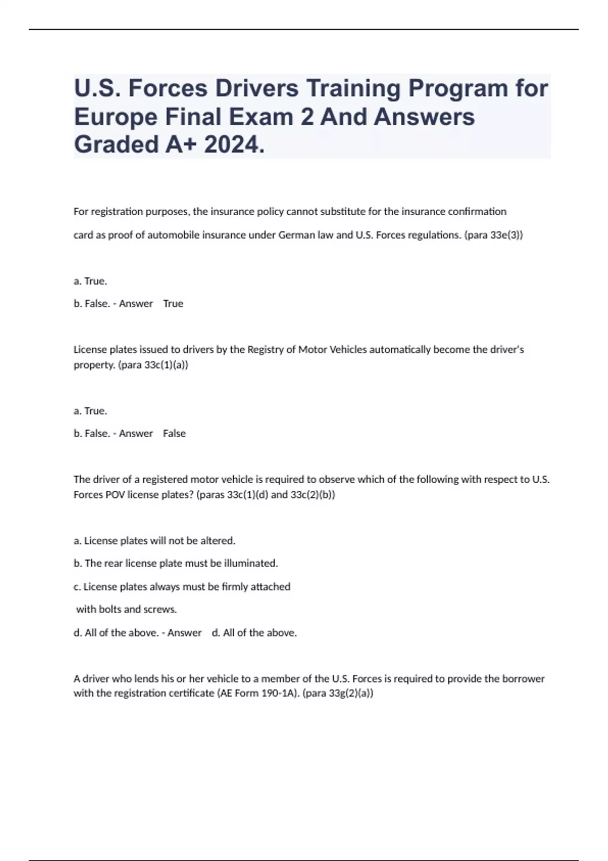 U.S. Forces Drivers Training Program for Europe Final Exam 2 And Answers Graded A+ 2024.