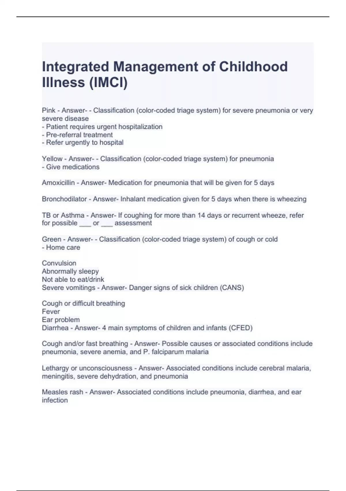 Integrated Management of Childhood Illness (IMCI) Exam Questions and Answers