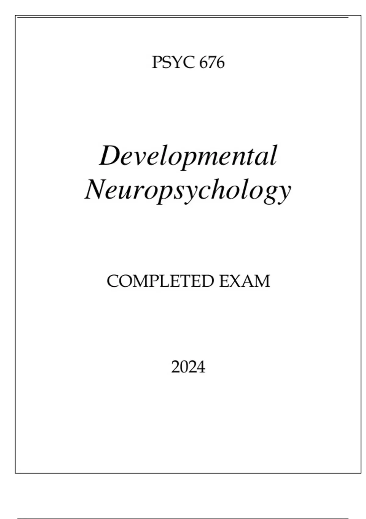 PSYC 676 DEVELOPMENTAL NEUROPSYCHOLOGY