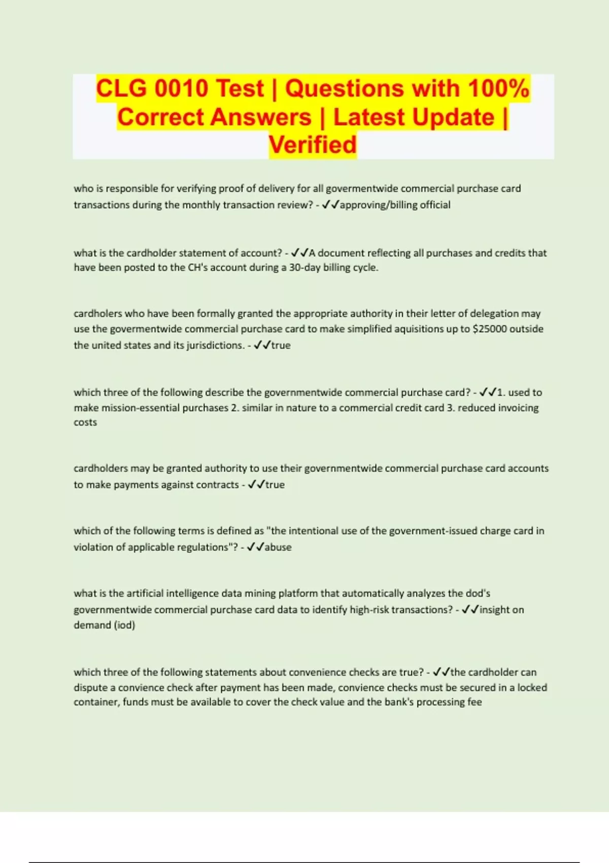 CLG 0010 Test | Questions with 100% Correct Answers | Latest Update | Verified
