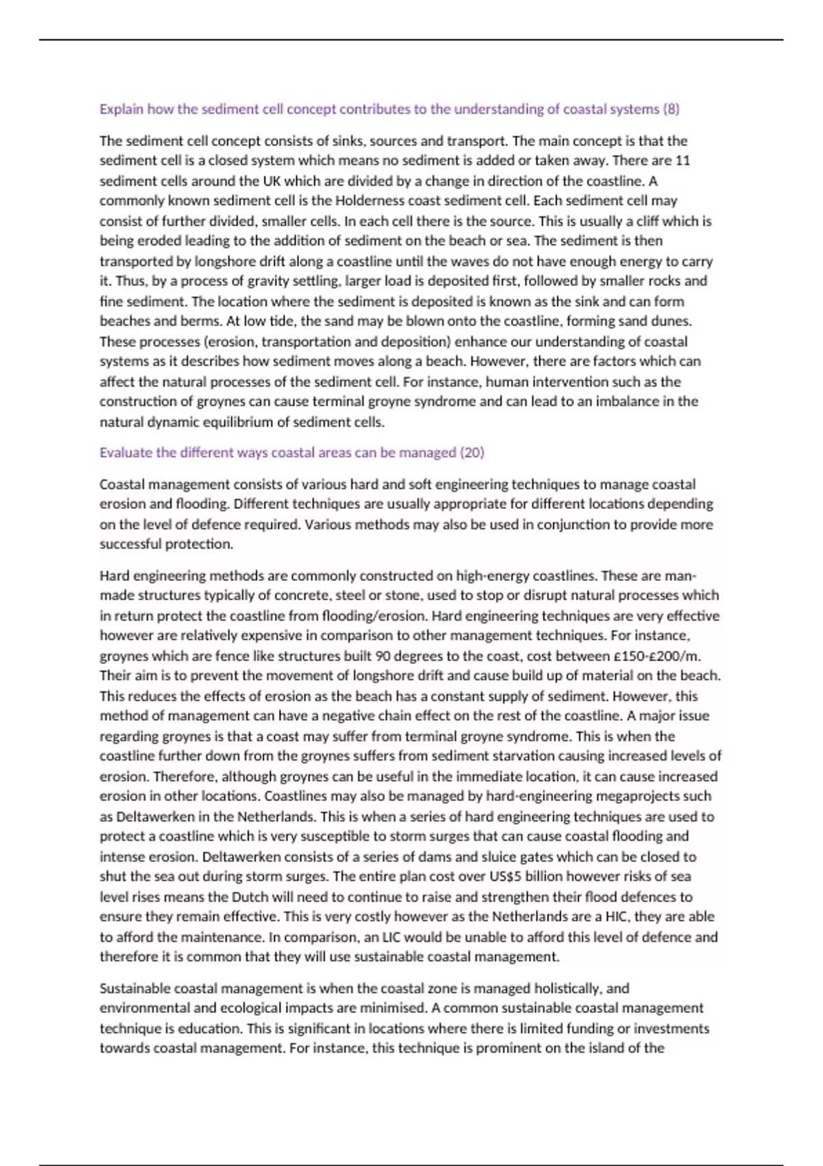 Evaluate the different ways coastal areas can be managed (20)
