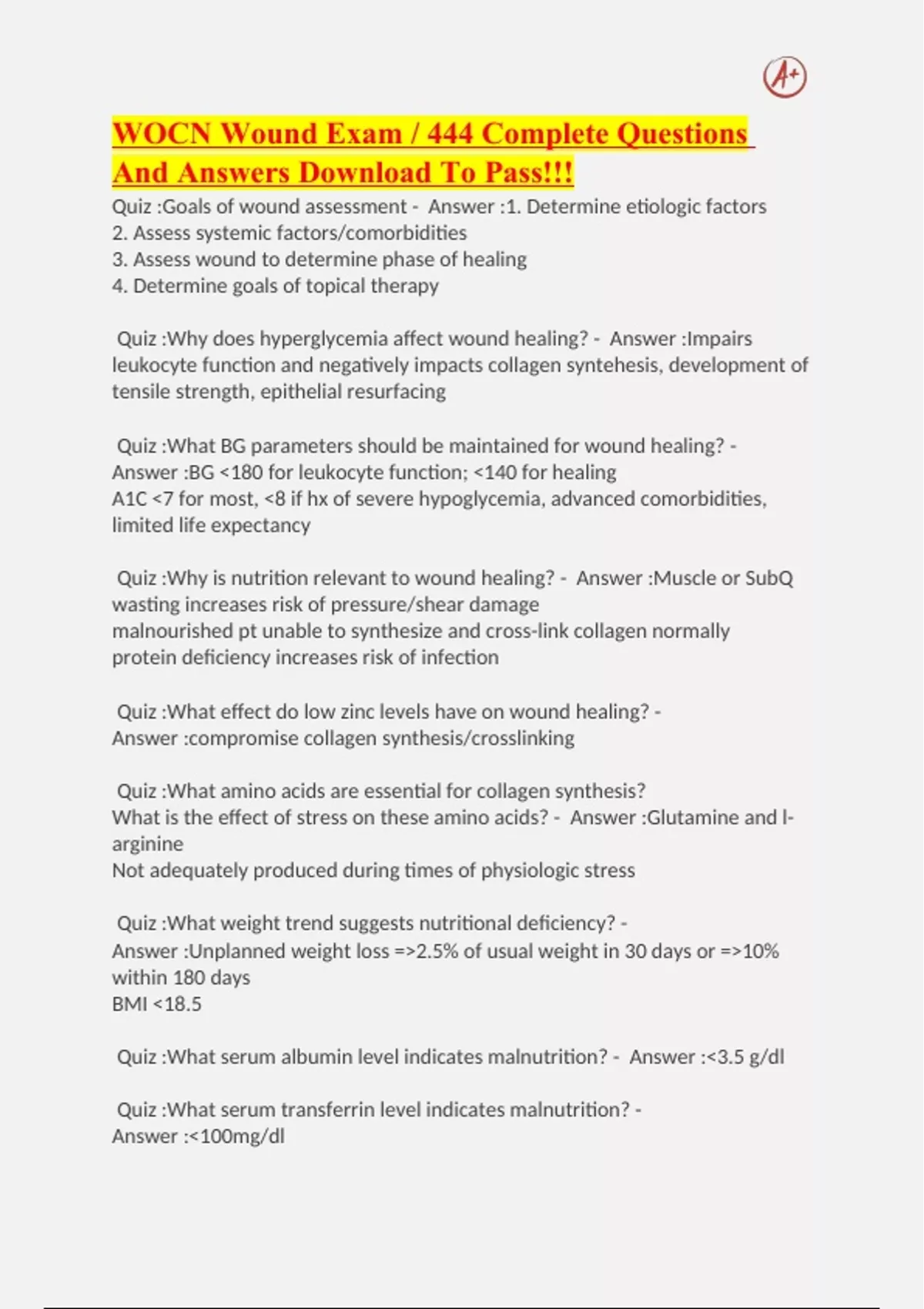 Quiz :Goals of wound assessment - Answer :1. Determine etiologic factors