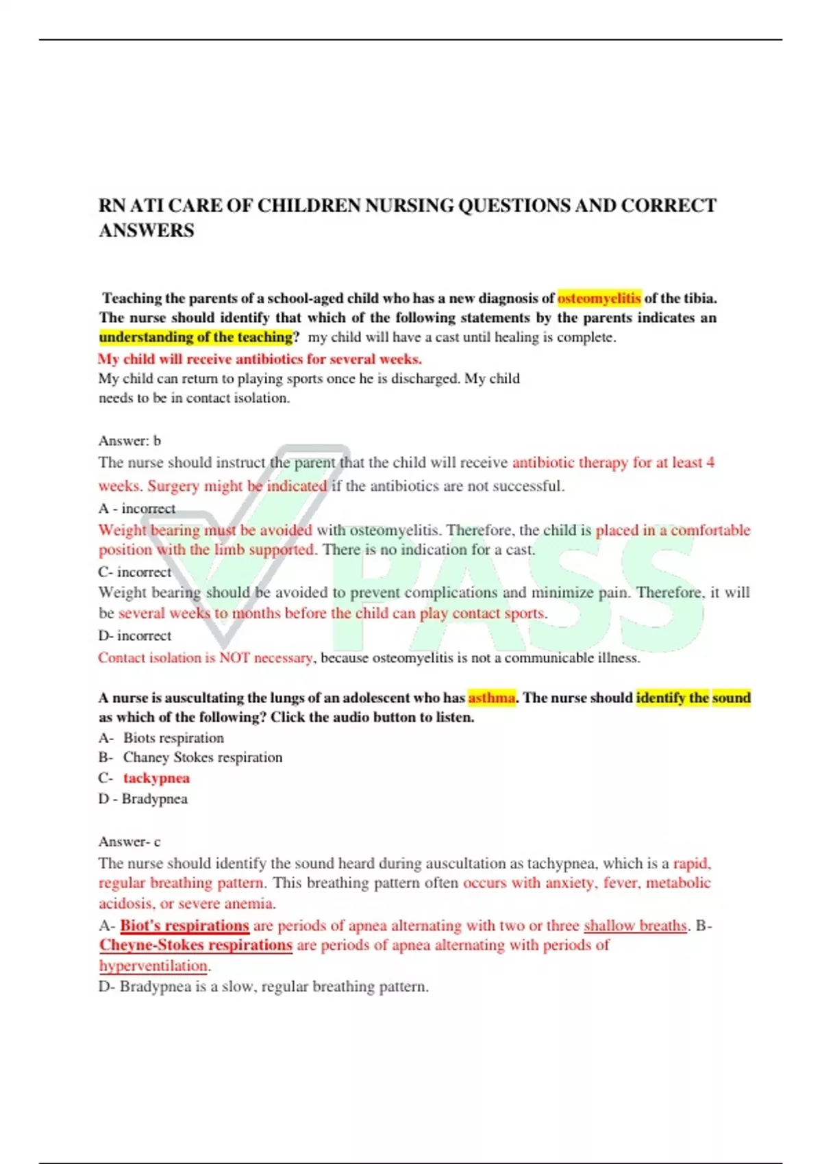 RN ATI CARE OF CHILDREN NURSING QUESTIONS AND CORRECT