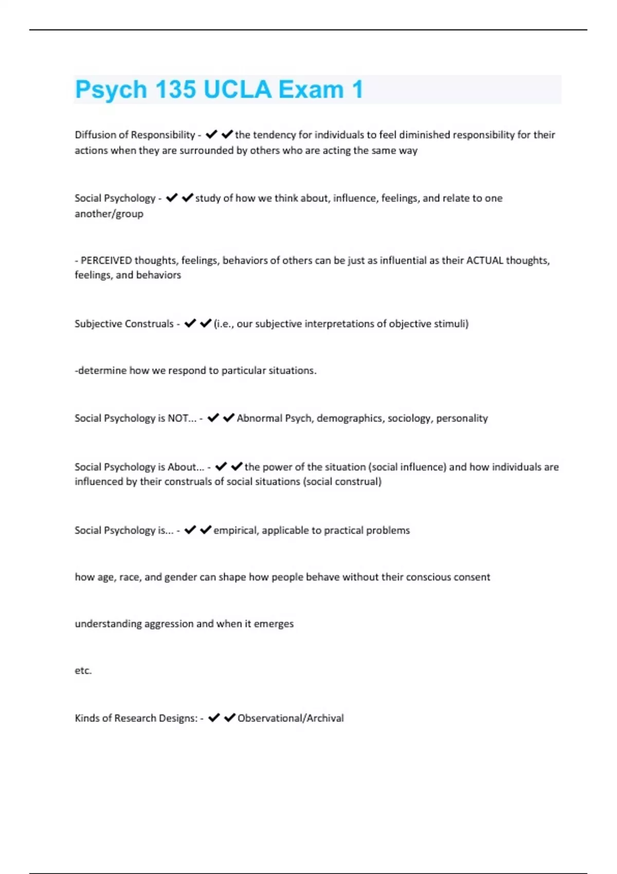 Psych 135 UCLA Exam 1 Questions and Answers Best rated A+ Guaranteed Success