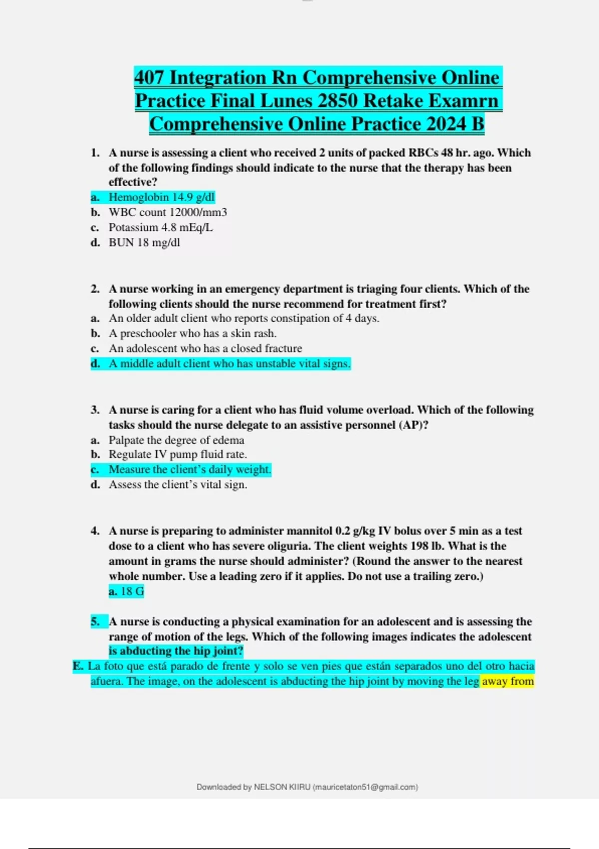 407 Integration Rn Comprehensive Online Practice Final Lunes 2850 Retake Examrn Comprehensive Online Practice 2024 B