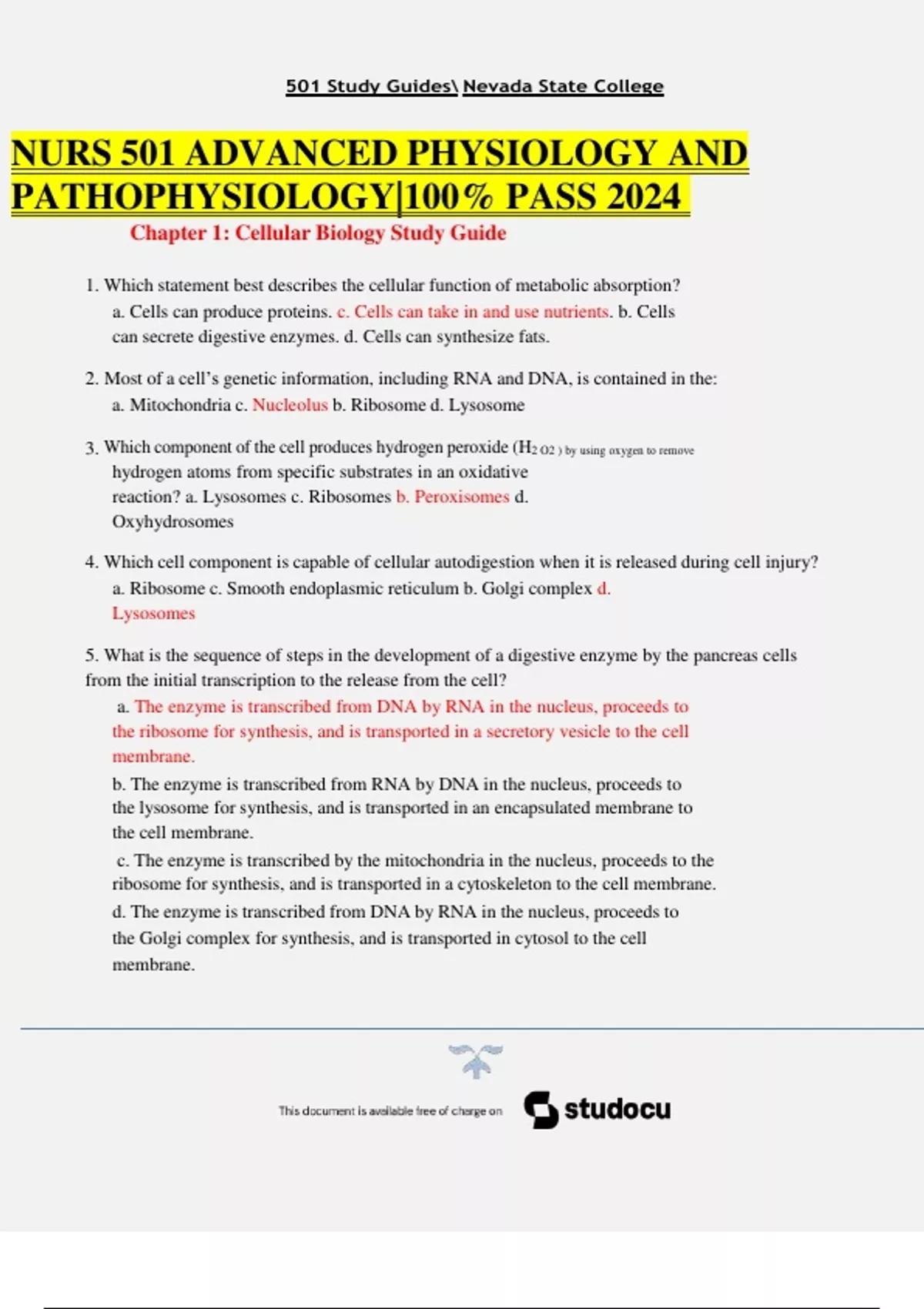 NURS 501 ADVANCED PHYSIOLOGY AND PATHOPHYSIOLOGY|100% PASS 2024