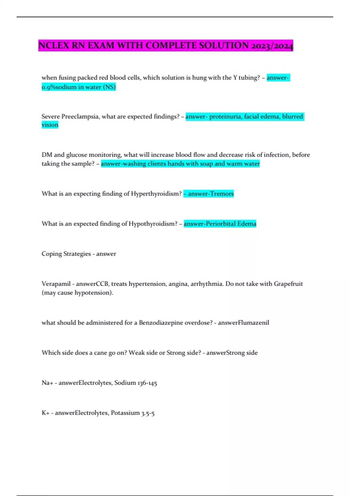 NCLEX RN EXAM WITH COMPLETE SOLUTION 2023/2024