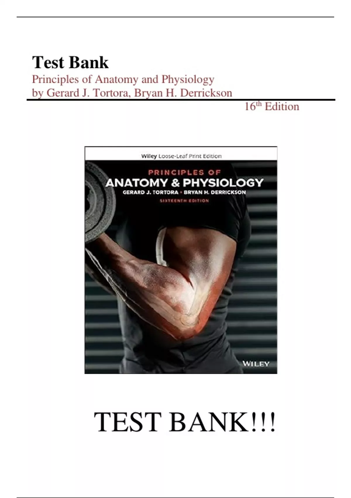 Test Bank For Principles of Anatomy and Physiology 16th Edition by Gerard J. Tortora, Bryan H. Derrickson||ISBN NO:10,1119662796||ISBN NO:13,978-1119662792||All Chapters||A+ Guide.