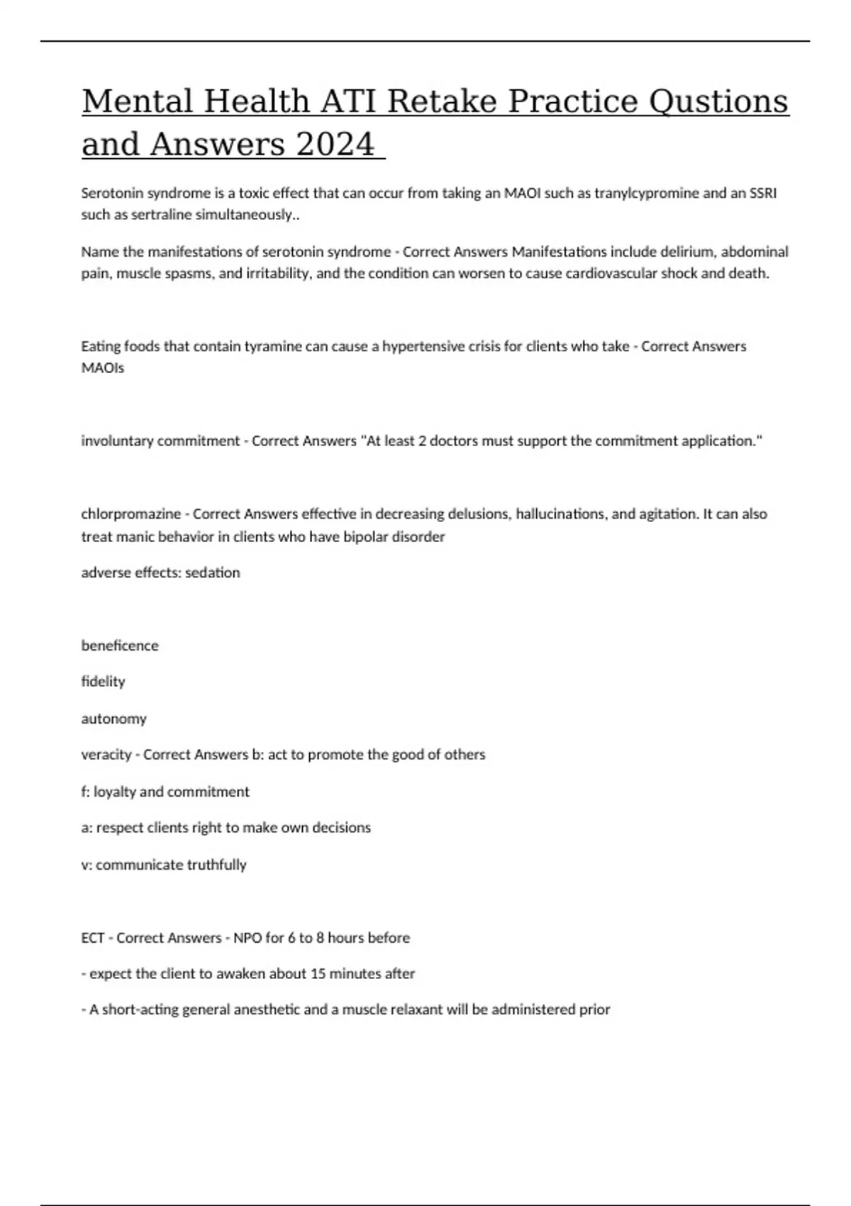Mental Health ATI Retake Practice Qustions and Answers 2024