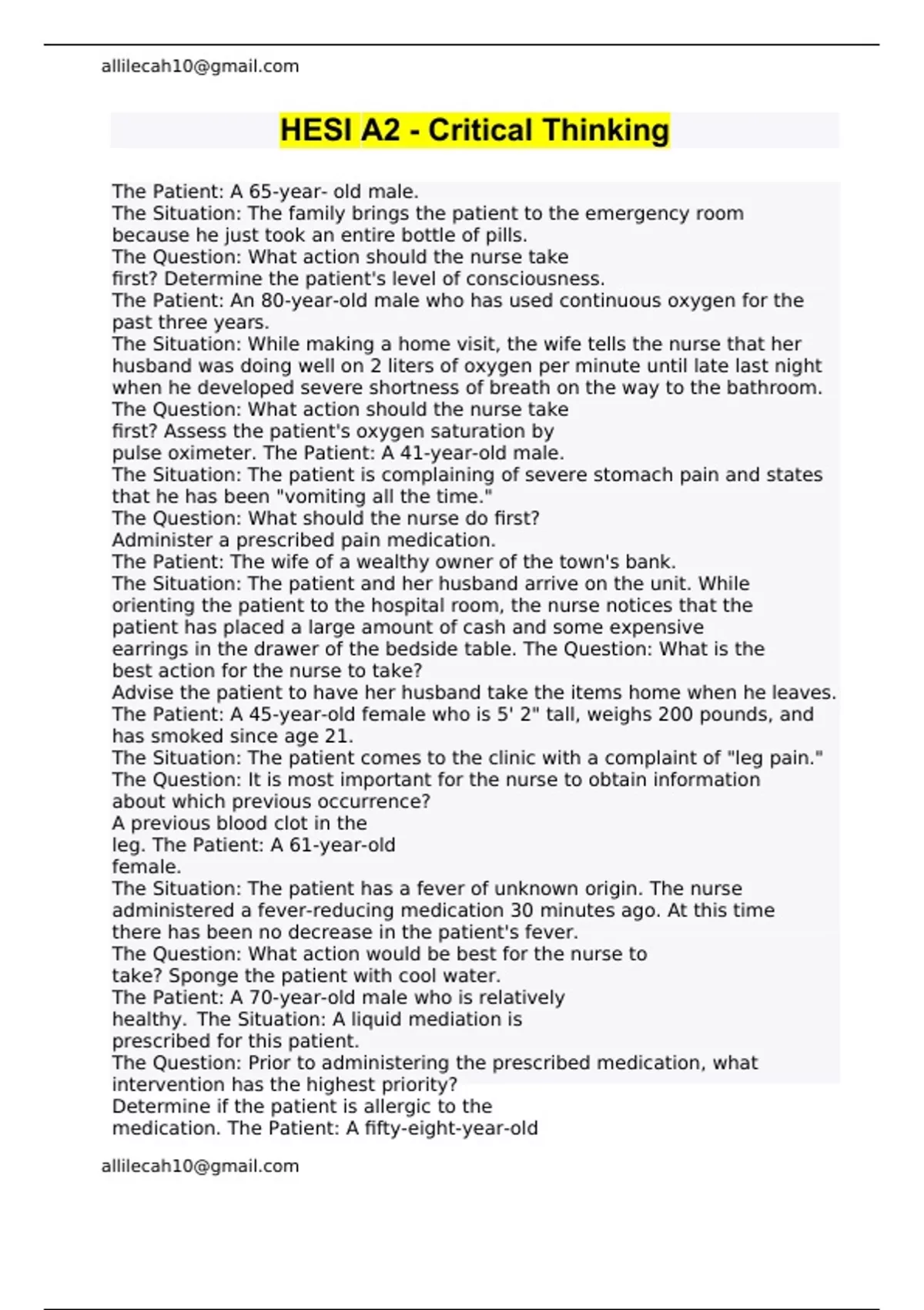 Hesi a2 EXAM QUESTIONS & ANSWERS/ LATEST UPDATE / RATED A+