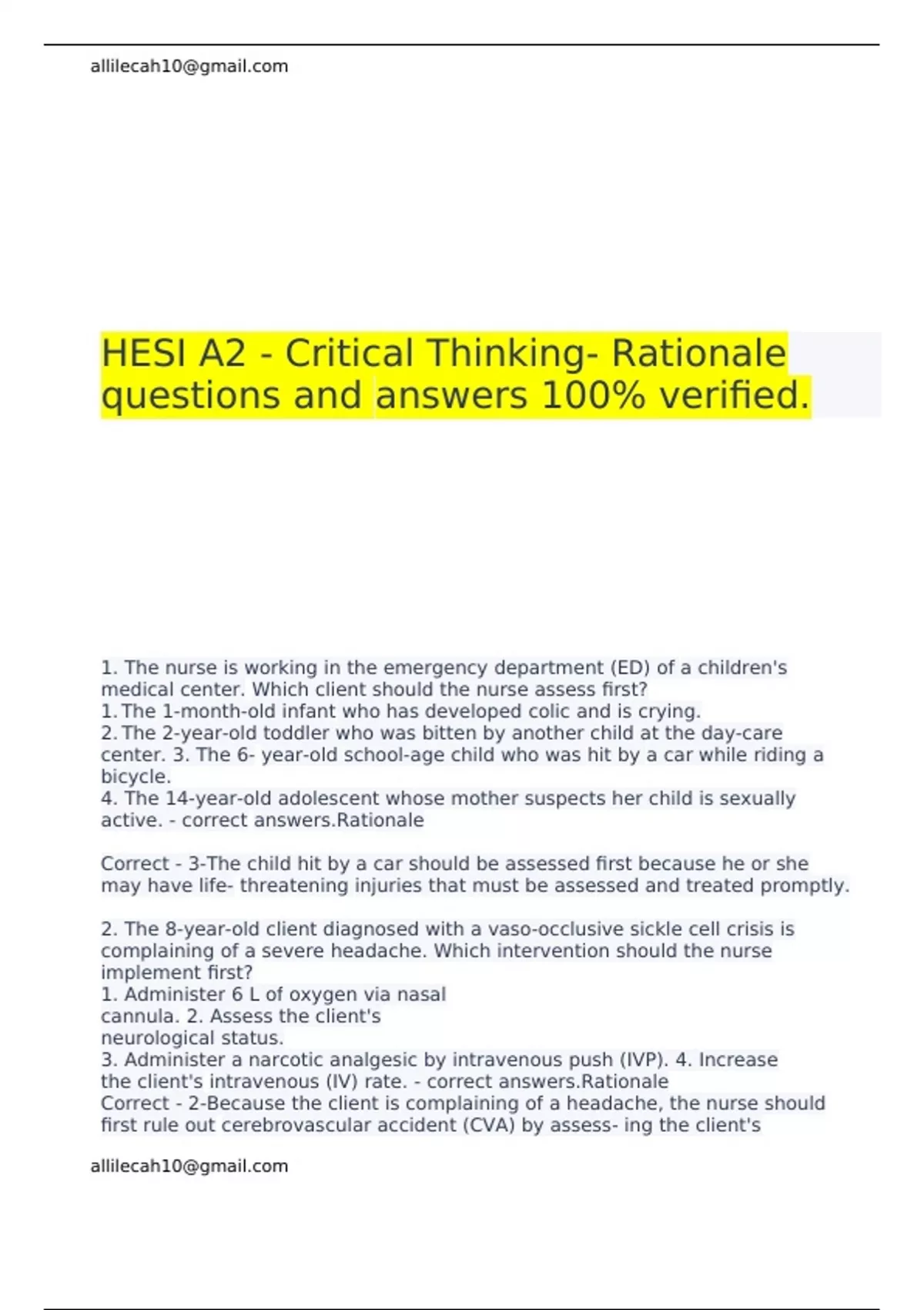 Hesi a2 EXAM QUESTIONS & ANSWERS/ LATEST UPDATE / RATED A+