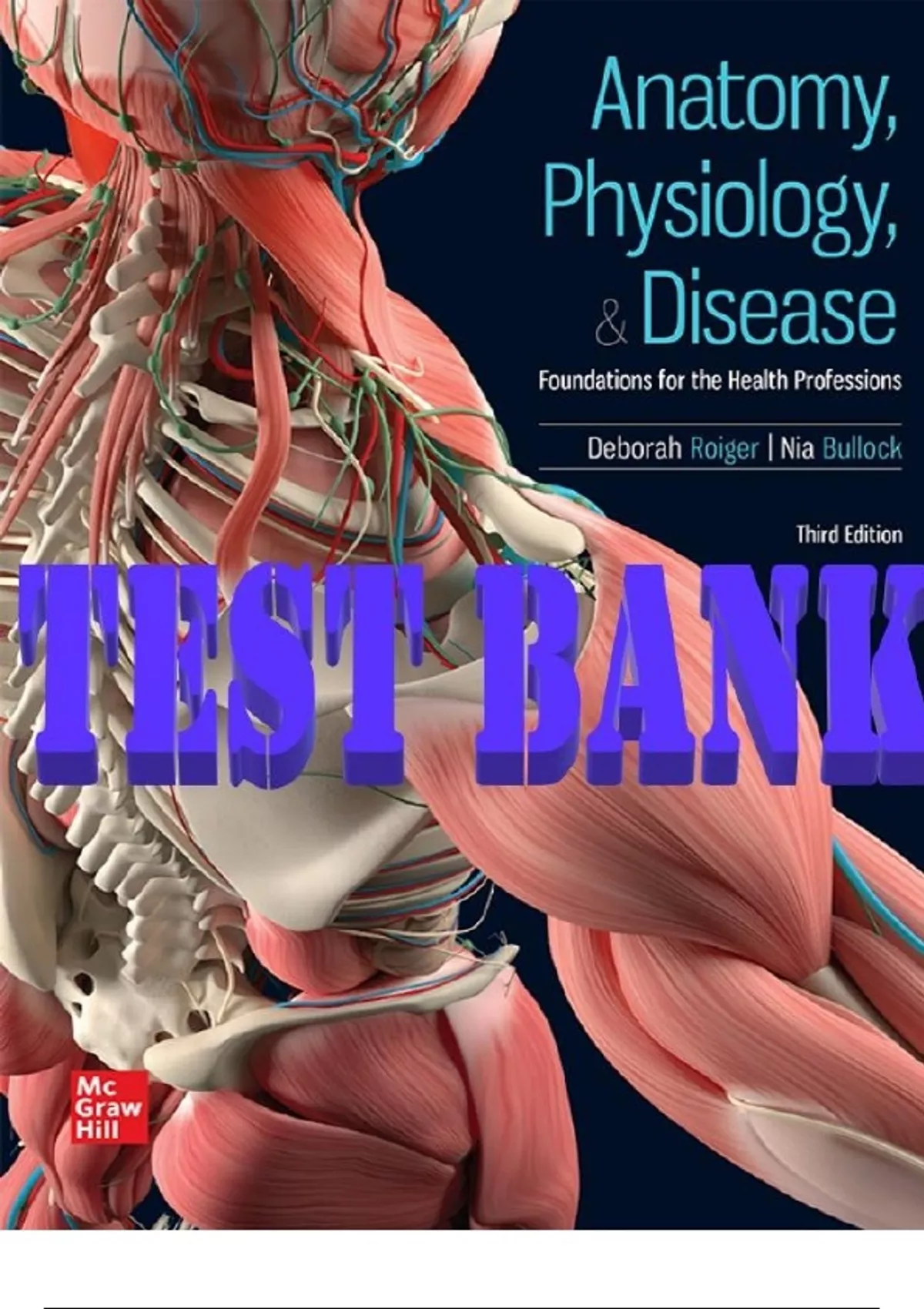 TEST BANK for Anatomy, Physiology, & Disease: Foundations for the Health Professions, 3rd Edition By Deborah Roiger and Nia Bullock ISBN13: 9781264130153. (Complete Chapters 1-16)